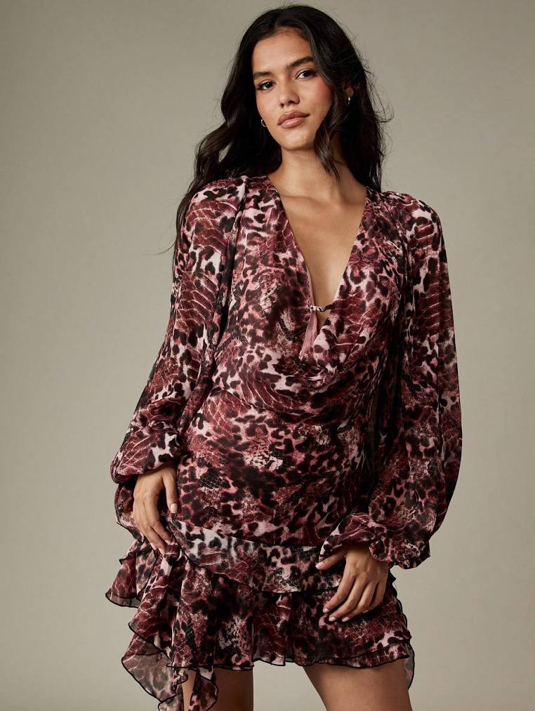 Missguided Leopard Print Cowl Neck Mini Dress